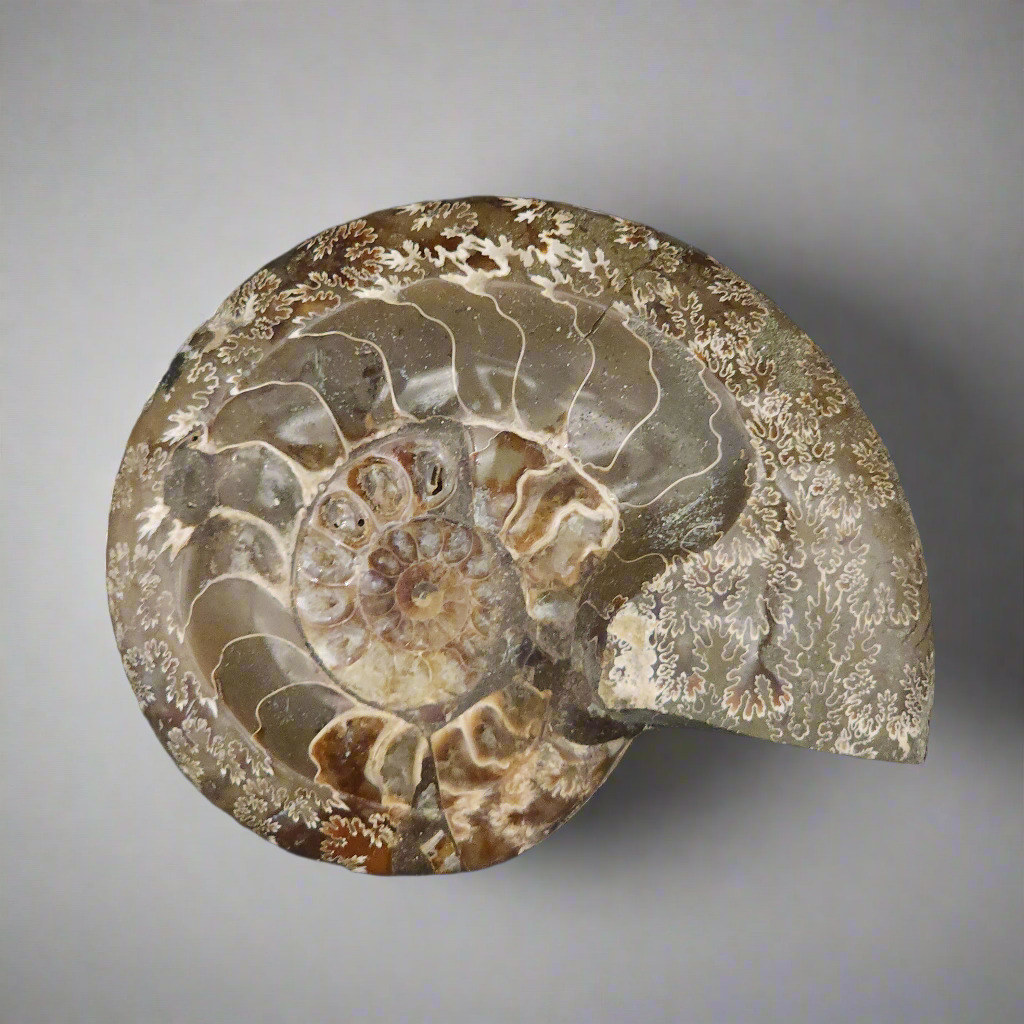Discover the beauty of ancient marine life with this exquisite 5.5" ammonite fossil from Madagascar, skillfully carved into a unique bowl. This fossilized shell, dating back over 70 million years, showcases intricate suture patterns and natural mineralization, offering a glimpse into prehistoric cephalopods. Perfect as a decorative piece for fossil enthusiasts or as a one-of-a-kind gift, this ammonite bowl combines natural history with functional art. Enhance your space with a touch of geological wonder.